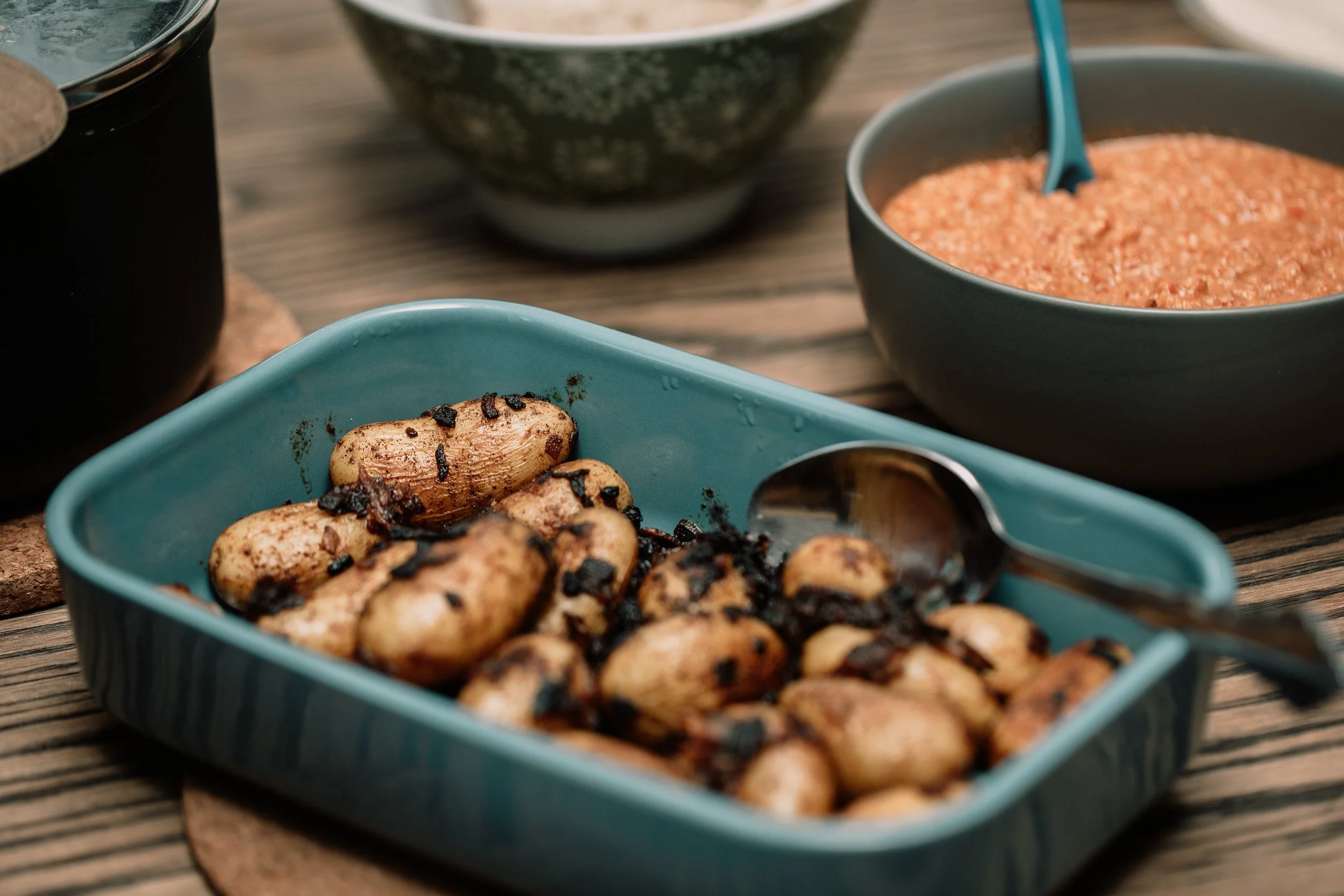 M jobbet hardt på kjøkkenet med å lage meze, mens jentene og jeg dro på søndagskonsert. Vi gikk hjem i vinterkulda, og fotavttrykkene våre knirker koselig i møte med det hvite. Vel hjemme fikk vi nyte et deilig måltid med mange smaksoverraskelser.