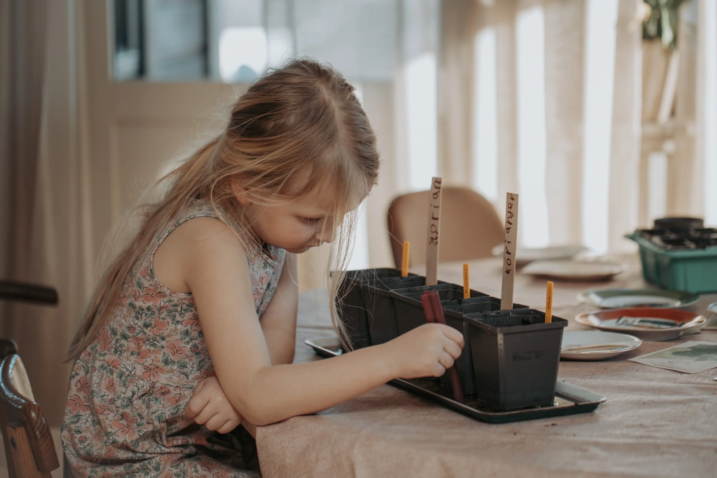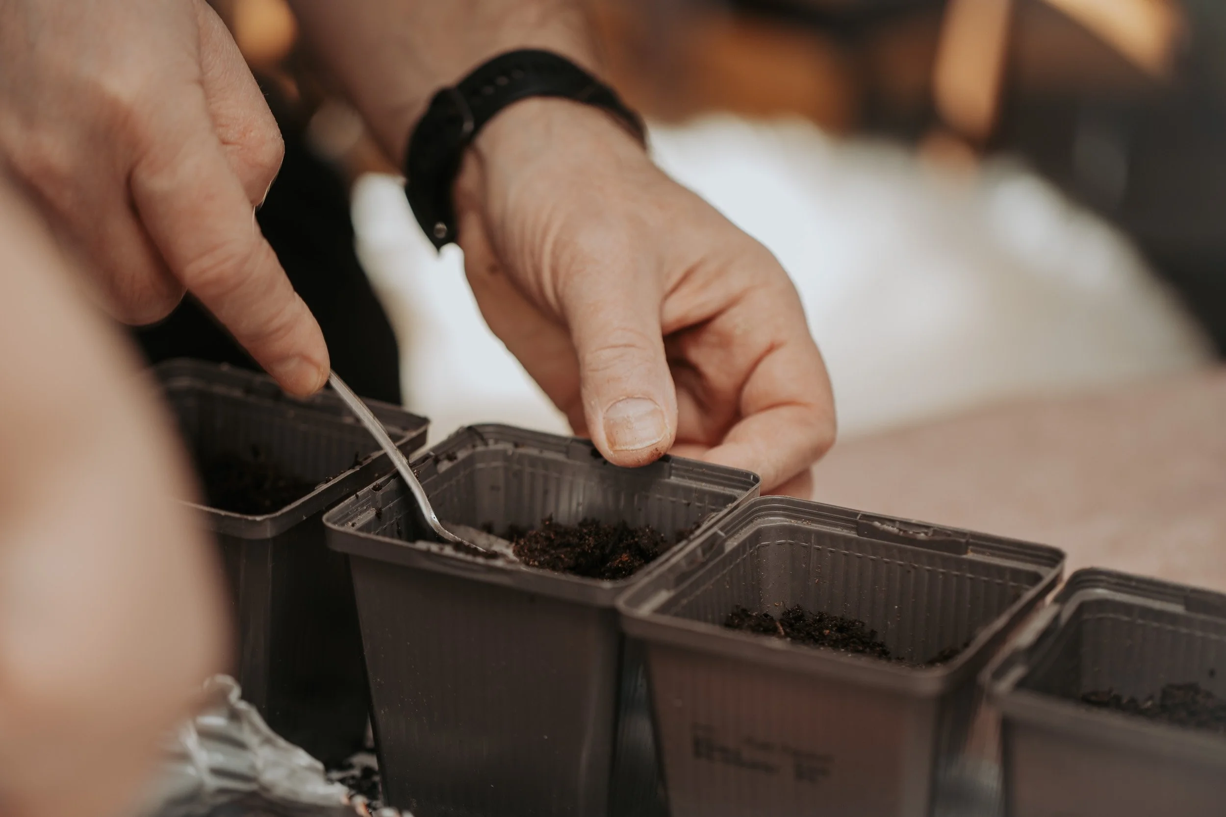 Omhyllet av gyllent lys har vi plantet små frø. Vi håper våren er snill mot dem og gir dem en god start. Vi skal gjøre vårt beste for å stelle med dem, og håper de vil trives og vokse.