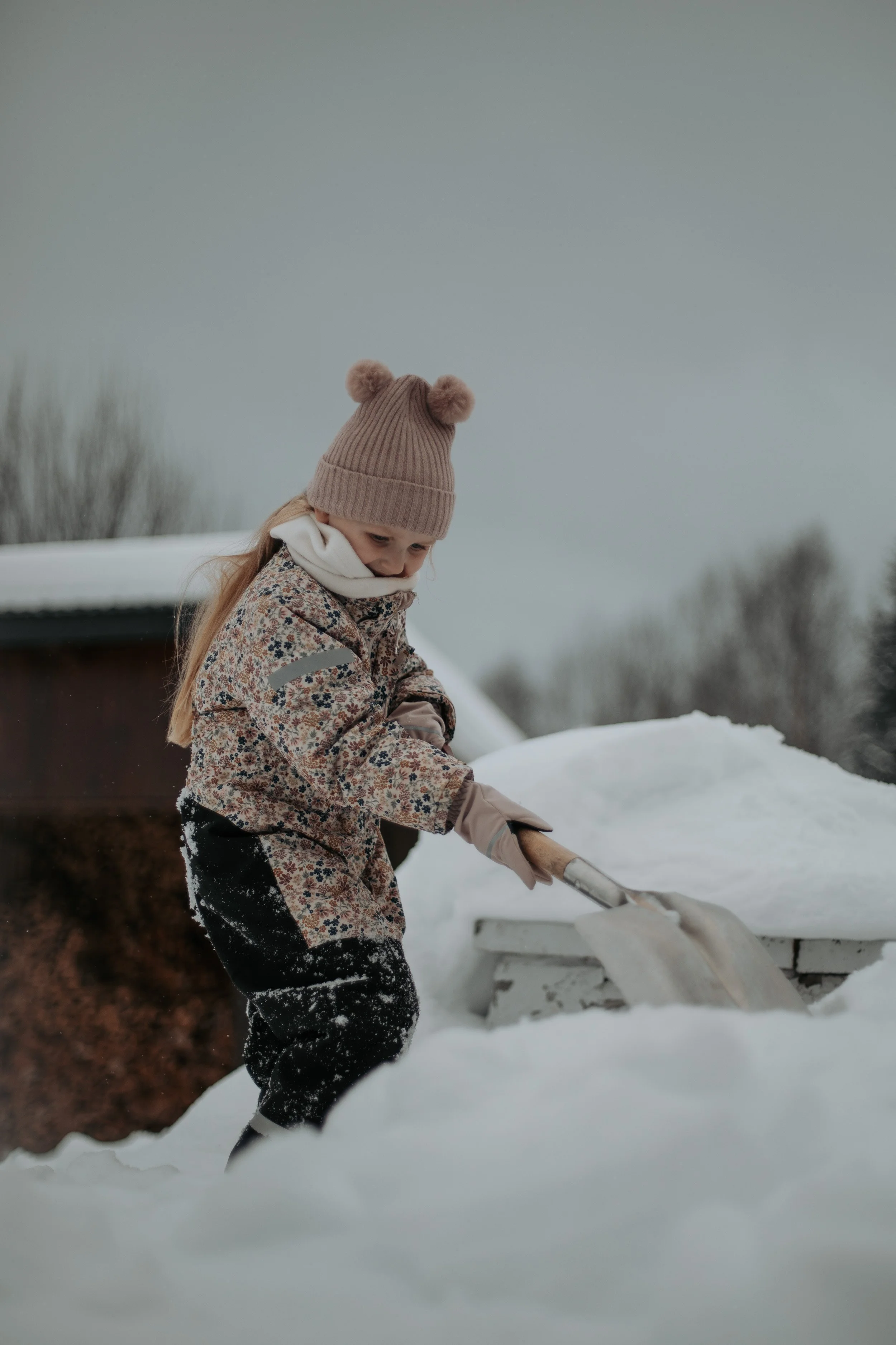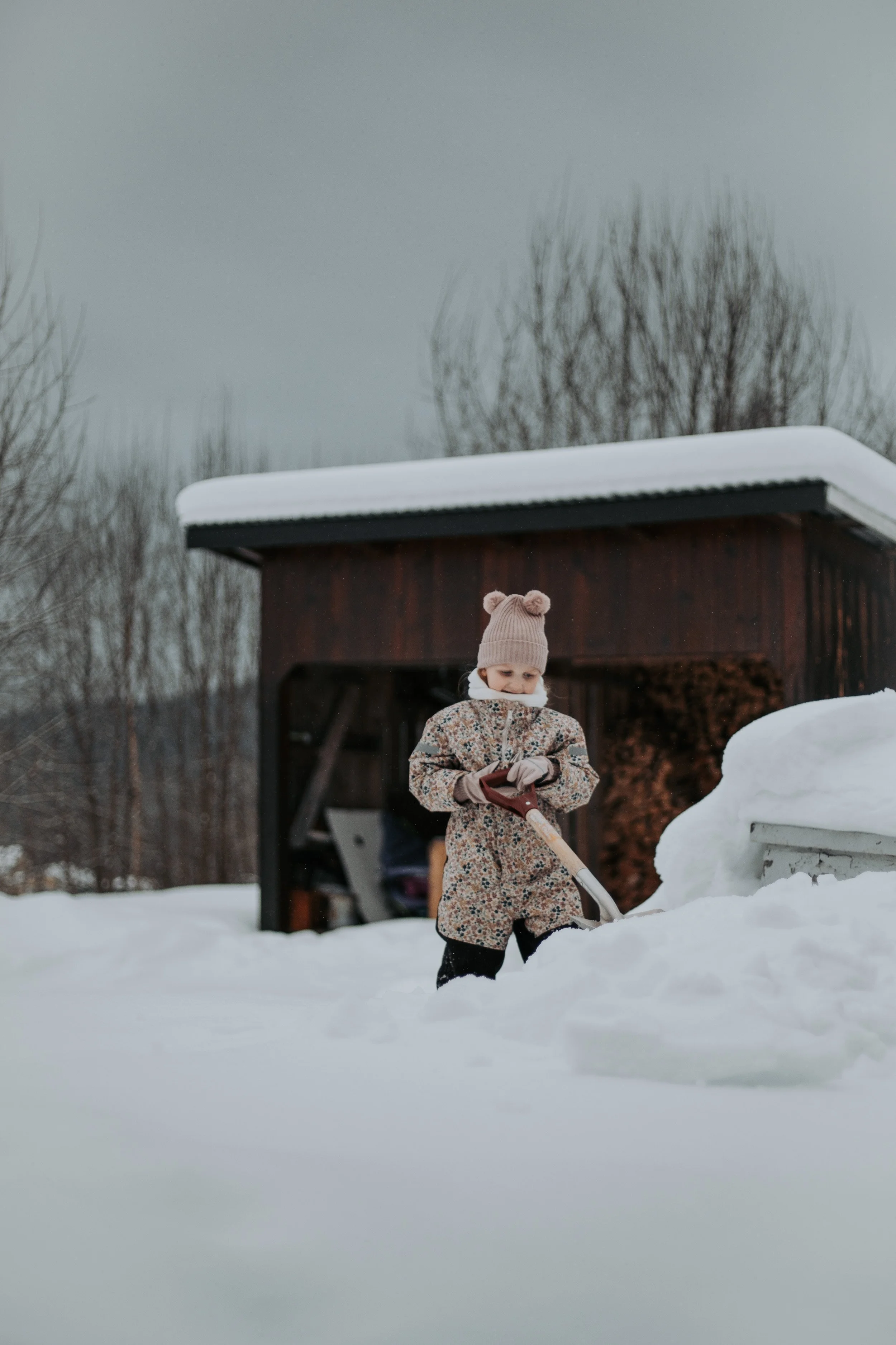 Det var høyvinter og vinterferie. M og jeg var ute for å få kontroll over snømassene på verandaen. Vi visste at det snart ville komme et væromslag, og at det var best å få flyttet på det hvite før det ble vått og tungt.
