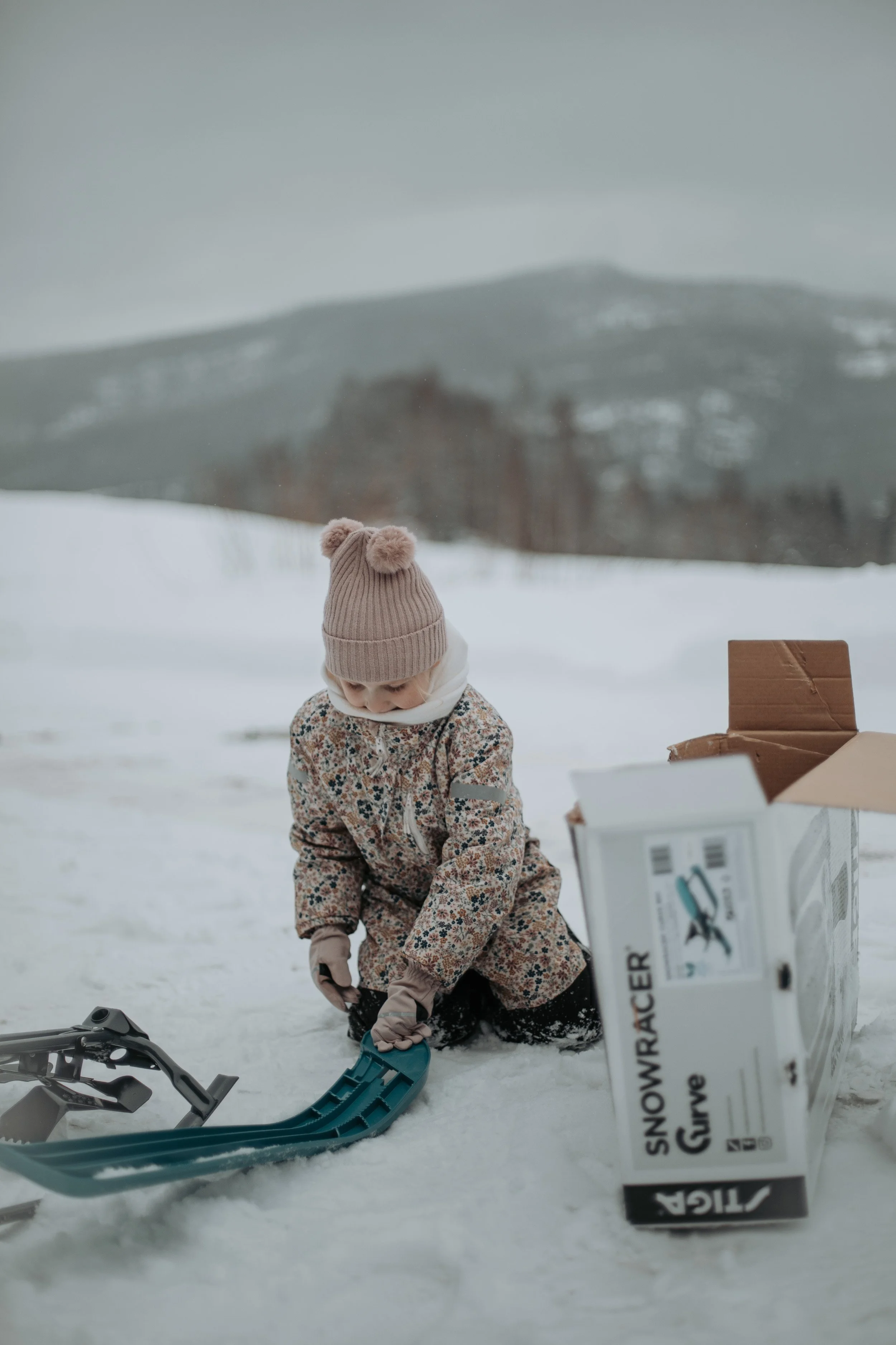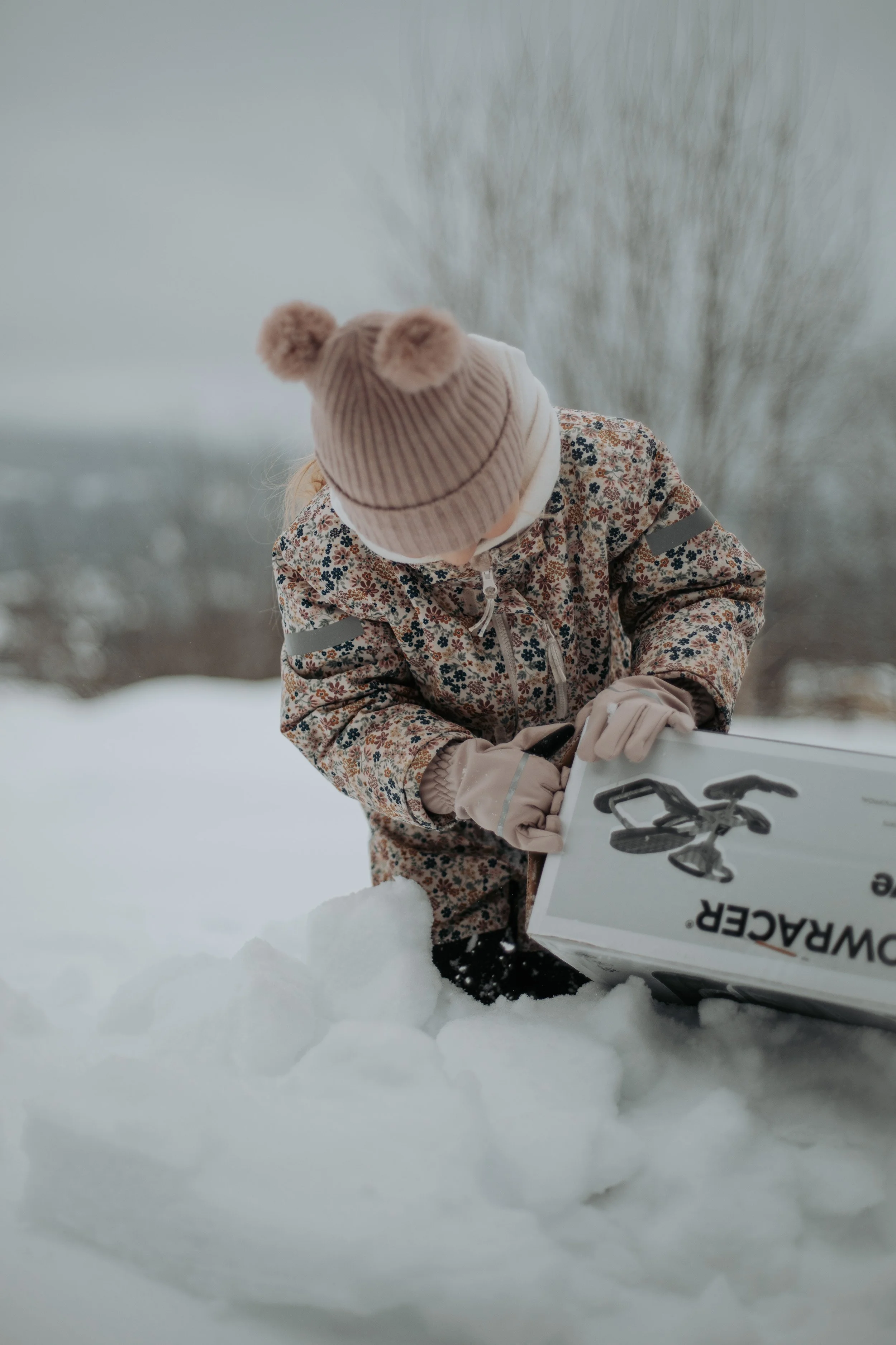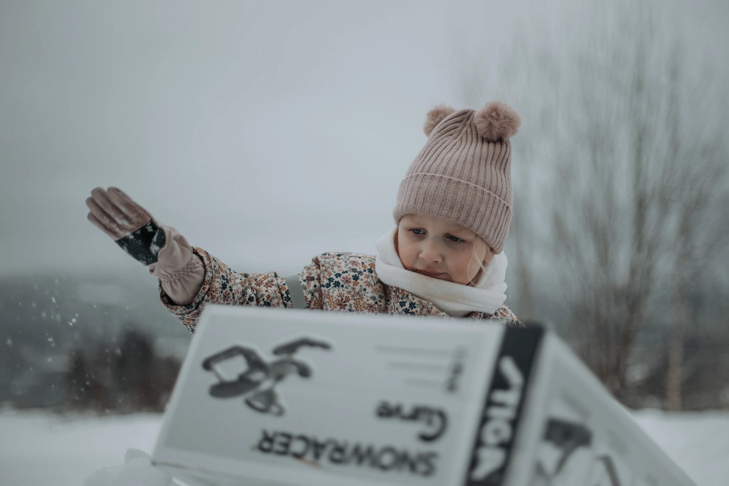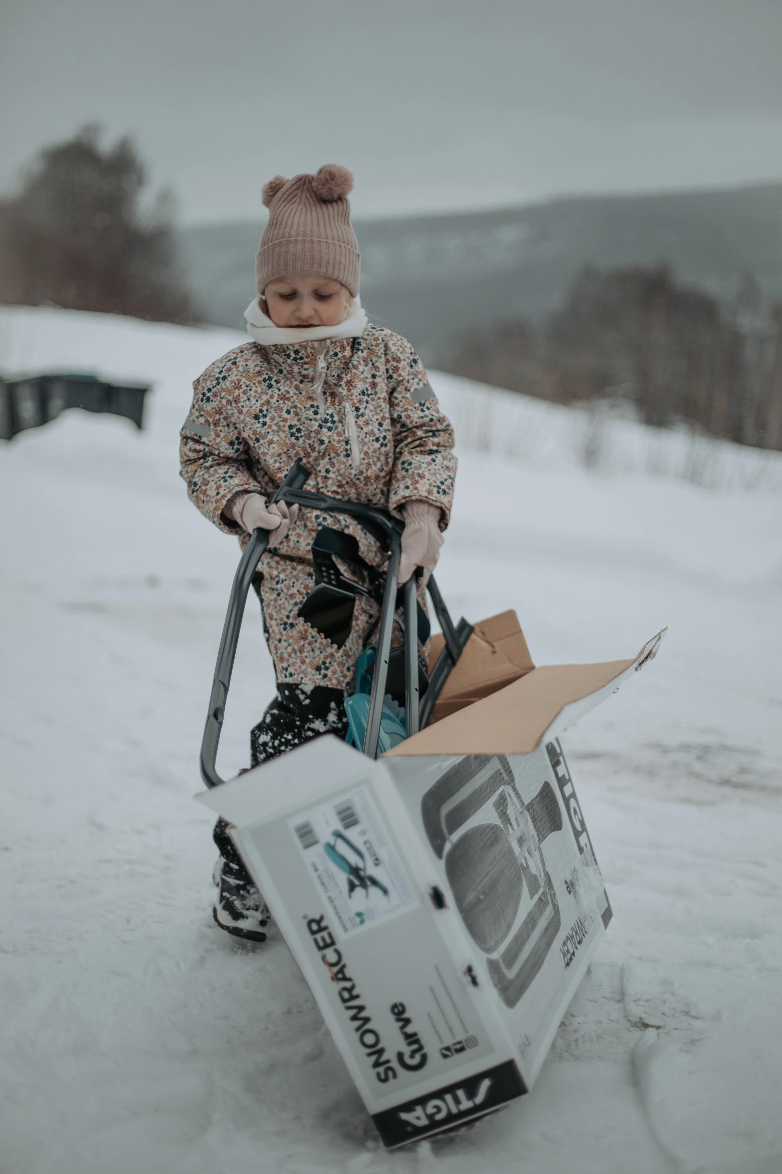 Samtidig visste vi at vi hadde en bursdagsgave til D som det var om å gjøre å få prøvd ut mens det enda var fine vinterforhold. Siden det var rikelig med snø, bestemte vi oss for at den kunne fungere som innpakkingspapir, og så kunne hun få gaven litt før selve bursdagen sin. Eller mer presist: grave den fram.